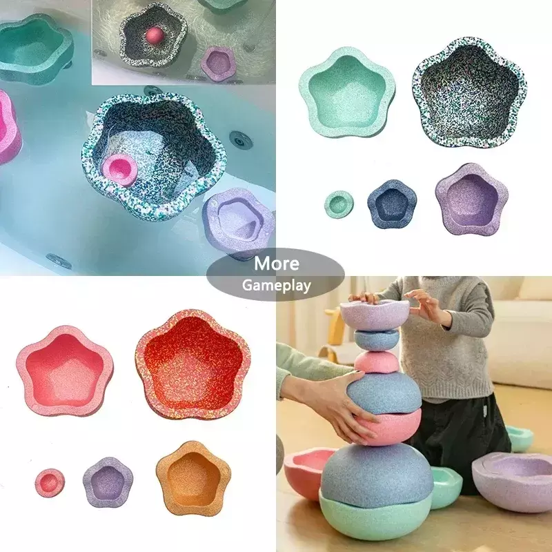 Estímulo à criatividade: as peças podem se transformar em torres, tigelas, flores, caminhos ou o que a imaginação permitir.